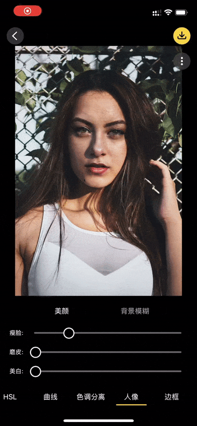 应用目前包含了简单的美颜功能,包括瘦脸、美白、磨皮,App 通过人脸识别自动定位人脸轮廓,为图片中所有出现的人脸进行修改。