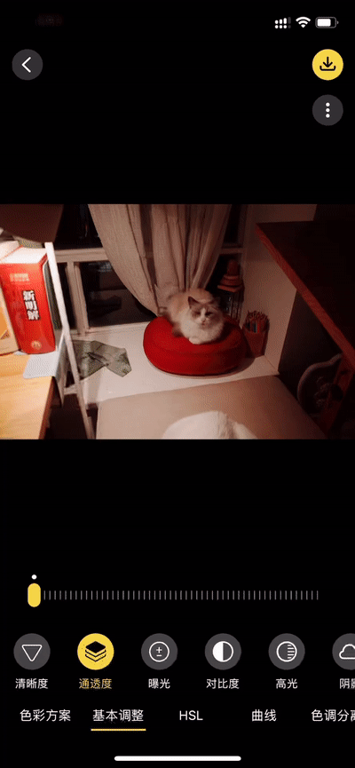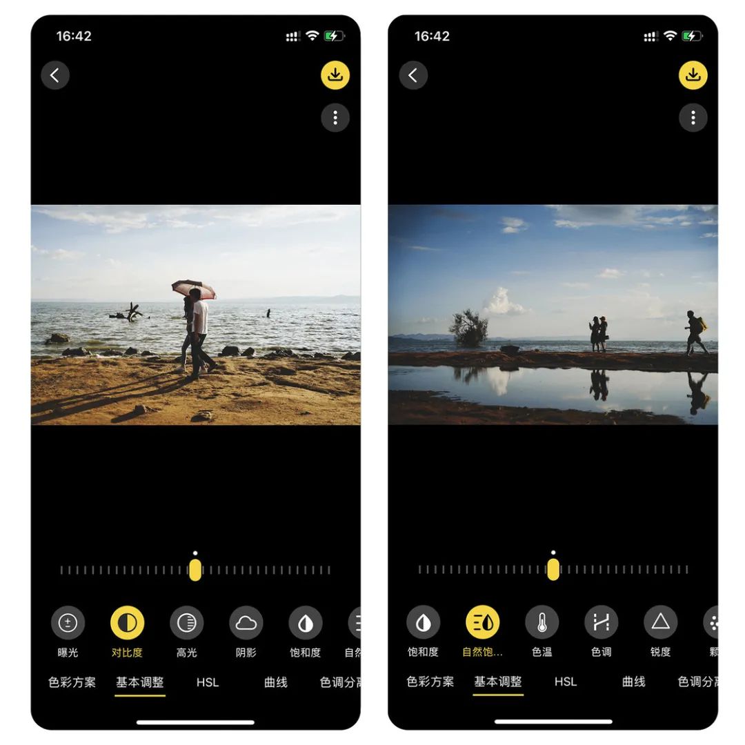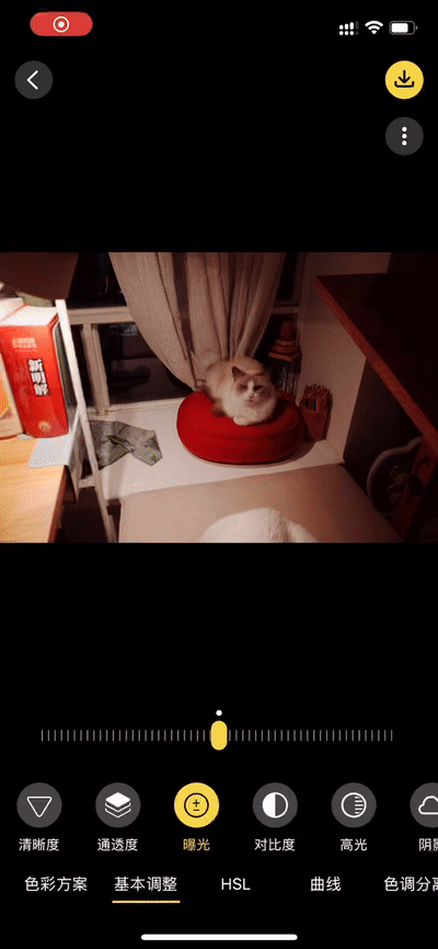 除了以上提到的一些功能,方弗相机也具备其他基本的修图功能,比如清晰度、曝光、对比度、饱和度、色温、色调、高光阴影等。