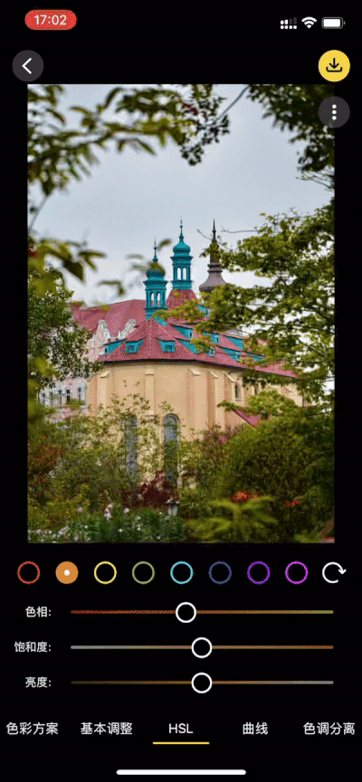 通过 HSL 功能,可以独立调节单个颜色的色相、饱和度、亮度,包括:红色、橙色、黄色、绿色、青色、蓝色、紫色、洋红。很多色彩预设,可以满足用户修图时的色彩偏向,比如偏红、偏青,通过 HSL 可以很好的调整实现。