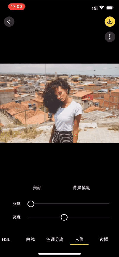 App 通过 AI 技术自动分离人像与背景,可以调节背景的模糊程度和亮度。