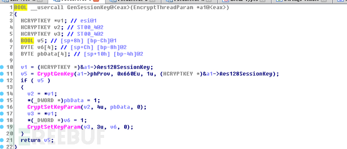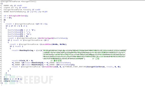 勒索木马Petya采用RSA2048 + AES128的方式对文件进行加密,程序中硬编码RSA公钥文件,针对每一个盘符都会生成一个AES128的会话密钥,该盘符所有文件均对该AES Key进行加密。
