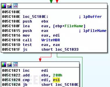 l 将病毒内置的MBR写入,长度为0x13个扇区