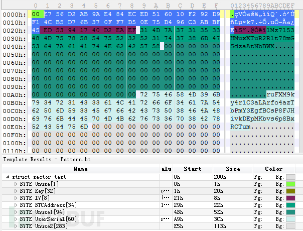 l 将随机生成的key,IV,硬编码的比特币支付地址以及用户序列号写入磁盘第0x20个扇区