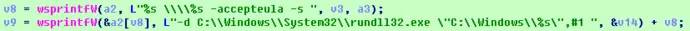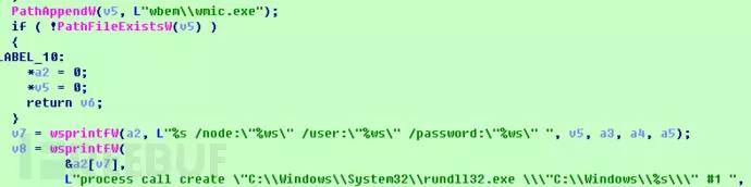 该命令将在目标主机上执行rundll32。exe调用自身dll的第1个导出函数,完成局域网感染功能。