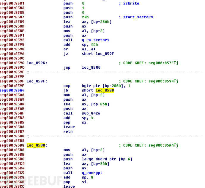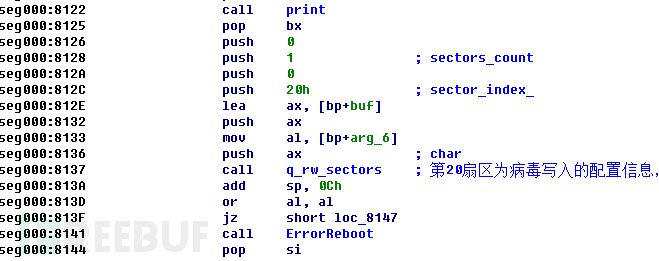 l 加密流程,读取病毒配置信息, 病毒加密用的key存在第0x20个扇区