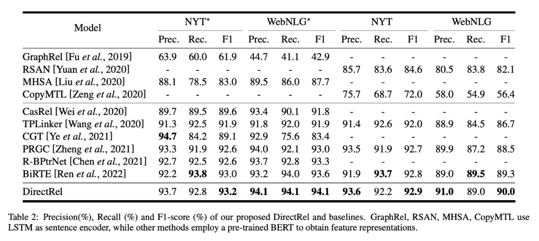 从表 3 中,作者根据实体的嵌套情况和句子中包含实体的长度,把测试集划分成了 18 个子测试集。DirectRel 在 18 个子测试集的 15 个上取得了最佳的性能。