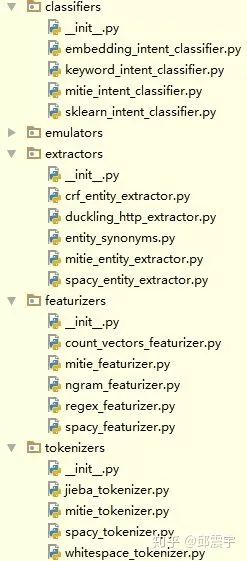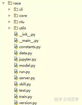 首先,看一下rasa框架的代码结构。如图所示: