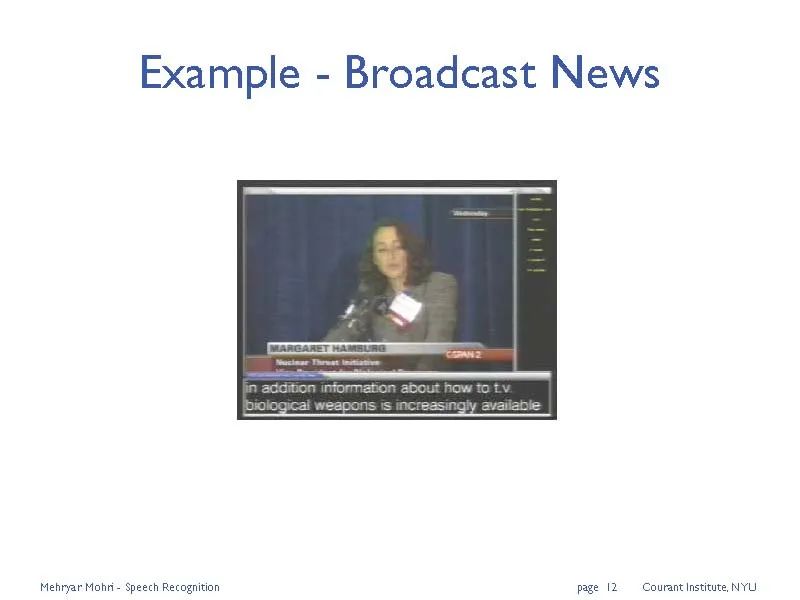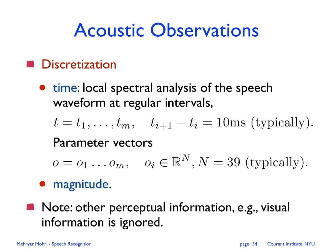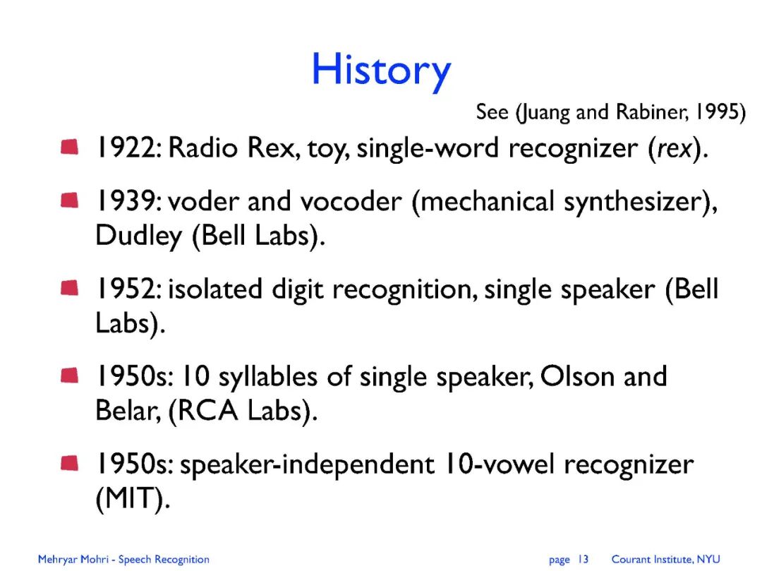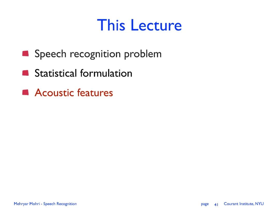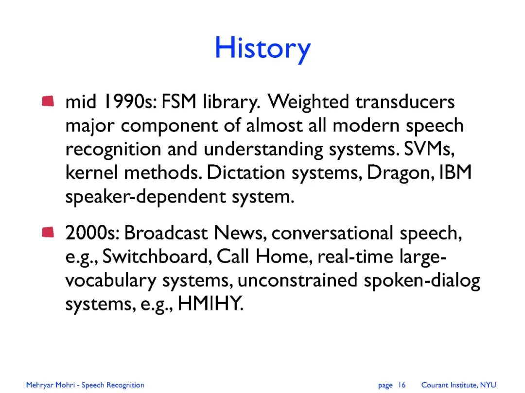 Lecture 01: introduction to speech recognition, statistical formulation.