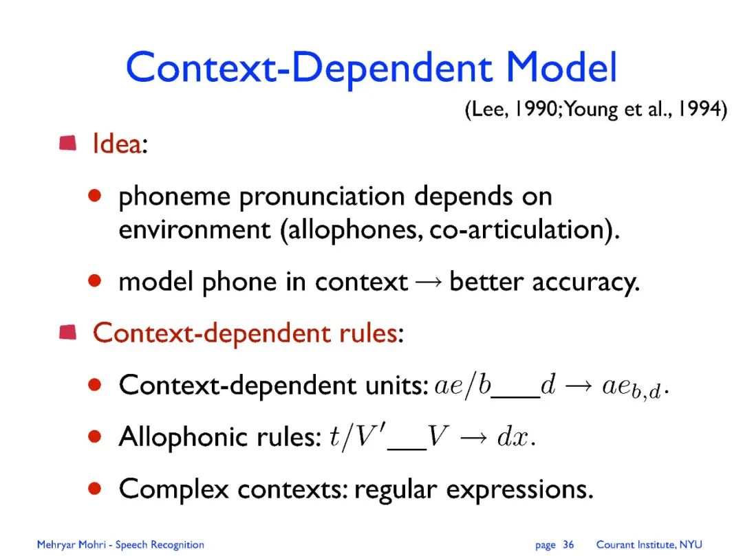 Lecture 10: pronunciation models, decision trees, context-dependent models.