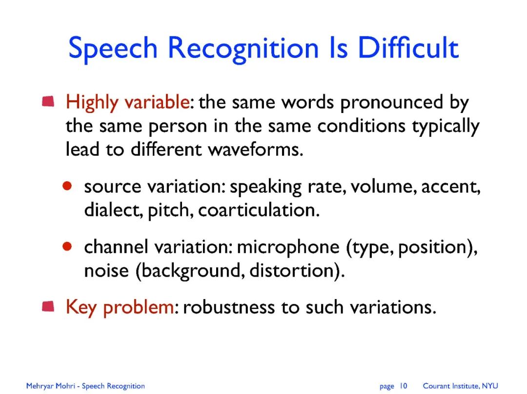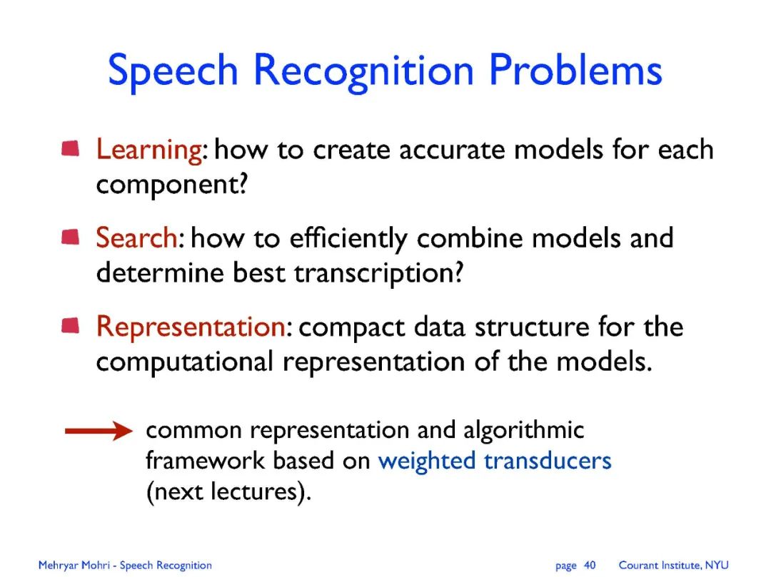 目前在自然语言处理、计算生物学和机器学习的其他应用领域中使用的许多学习和搜索算法和技术,最初都是为解决语音识别问题而设计的。语音识别继续给计算机科学带来挑战性的问题,特别是因为它产生的学习和搜索问题的规模。
