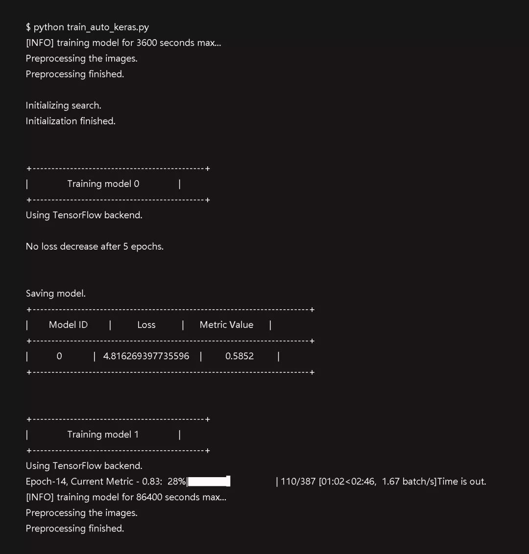 让我们继续使用Auto-Keras训练我们的神经网络。