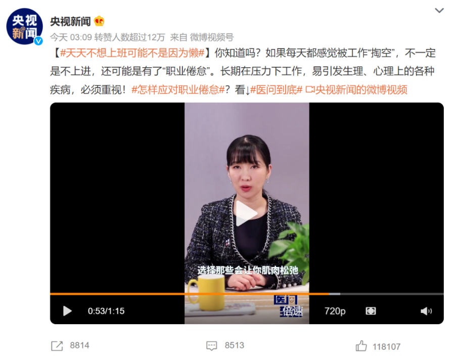 职业倦怠是现代职场中的流行病,和不少老年病愈发年轻化一样,这种情况在年轻职场人中也非常普遍,打工人产生职业倦怠的时间周期越来越短,相当一部分人步入职场没多久,就已经对工作心生厌恶。