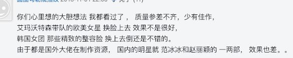不过,与美国的广泛讨论不同,在中文互联网,尽管利用 DeepFake 作出的假视频也开始越来越多,但关于 DeepFake 的讨论还是更多地局限在那些小众论坛里。人们以一种猎奇的心态谈论着这些视频。比如这名用户,像点评普通电影一样点评着他看过的 DeepFake 视频。