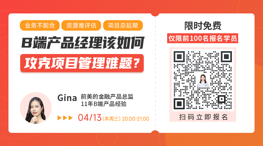 业务总是不愿意配合、风险无法把控、项目总是要延期?其实这些都是缺乏项目管理方法的表现。4月13日(本周三)晚8点,前美的金融产品总监@Gina老师将分享她的实战经验,教你一套实用的项目管理方法。