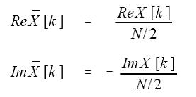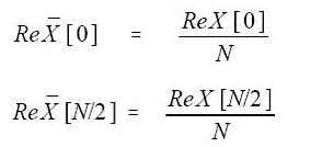 但k等于0和N/2时,实数部分的计算要用下面的等式: