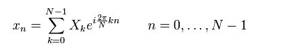 为了在科学计算和数字信号处理等领域使用计算机进行傅里叶变换,必须将函数xn定义在离散点而非连续域内,且须满足有限性或周期性条件。这种情况下,使用离散傅里叶变换(DFT),将函数xn表示为下面的求和形式: