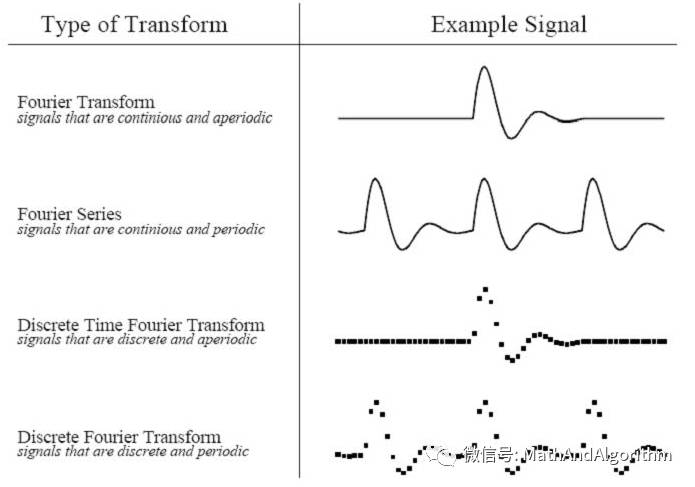 以下就是傅里叶变换的4种变体(摘自,维基百科)