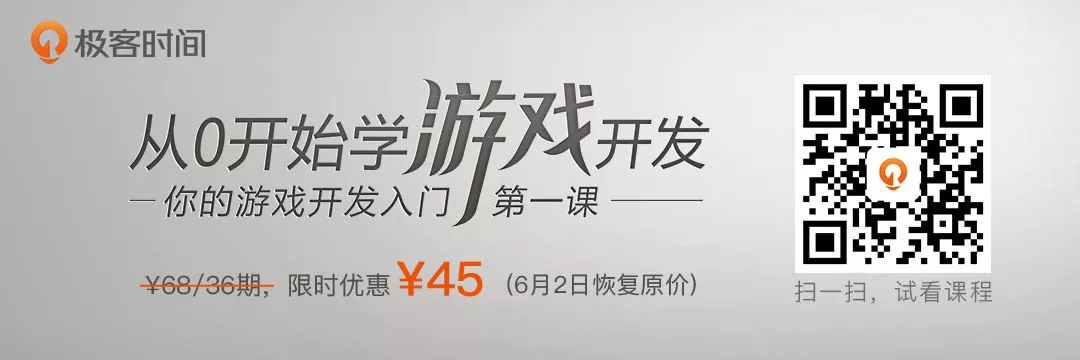 游戏行业的高回报,也吸引着越来越多的人跃跃欲试,但是成为一名专业的游戏开发之路上也暗含着无数的坑。为了帮助大家能快速入手游戏开发,我在极客时间开设了新专栏,我选择 用最简洁最自然的 Python 语言来讲这门课,从零开始,由表及里,从语言到场景,从架构到实现,最终帮助你做出一款自己的游戏。