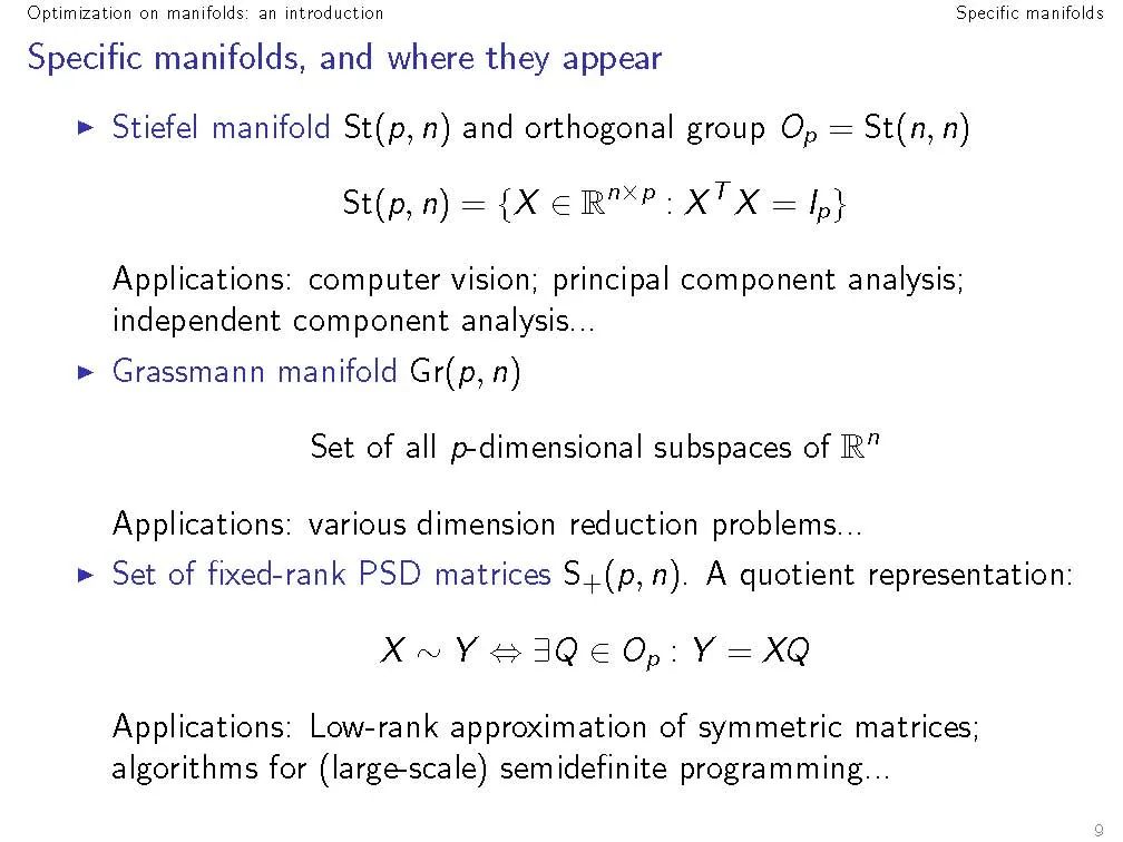 矩阵流形上的优化算法提供了在线性代数、信号处理、数据挖掘、计算机视觉和统计分析中广泛应用的技术。它可以作为研究生水平的教科书,对应用数学家、工程师和计算机科学家感兴趣。
