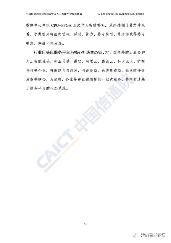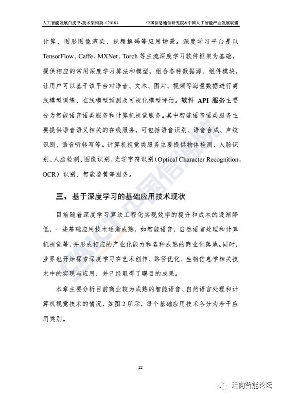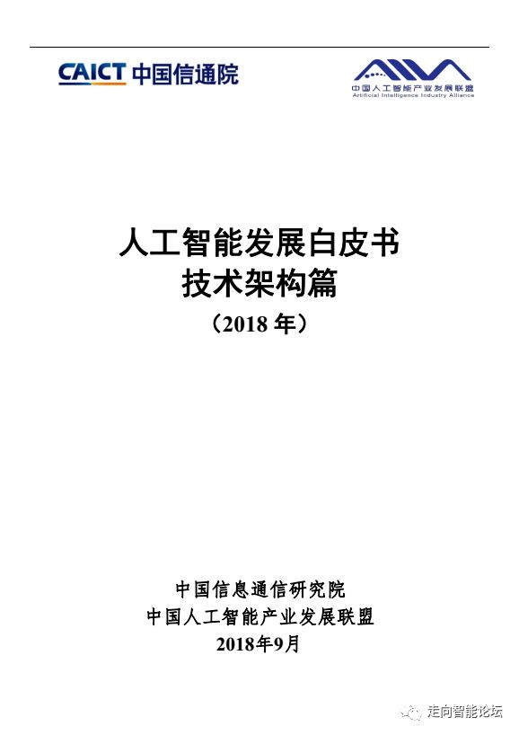 在“走向智能论坛”微信公众号回复“20180910”,可免费下载”《人工智能发展白皮书-技术架构篇(2018年)》“完整PDF