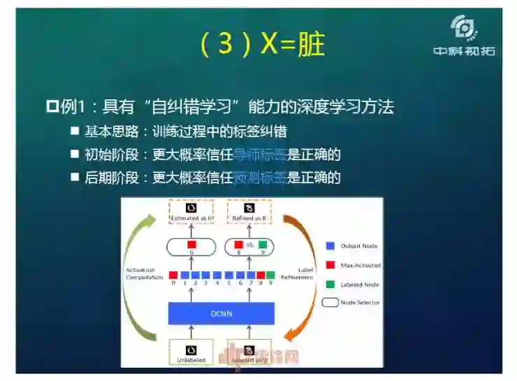第三,X=脏,还有很多情况下是脏数据。所谓的脏数据,比如在百度图片搜索“成龙”,确实会反馈很多成龙的照片,但是也会有大量的不是成龙的照片。而我们又不想雇1000个人大量的数据把它标注出来,干脆就基于有噪声的数据实现机器学习。所以我们在今年提出具有“自纠错学习”能力的深度学习方法,在深度学习的过程中,一边去学习算法,一边去估计哪些样本的标签可能是错误的,我们把一些可能错误的标签修正过来,从而得到更好的算法。利用这种策略,我们发现,即使加了40%或者60%的错误标签,我们的算法也能够实现不错的深度学习效果。