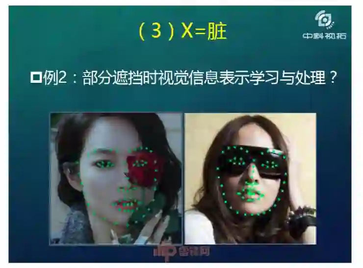X=脏,这个脏还可能有另外一层含义,比如说有遮挡的情况。我们也提出了一个算法,在这个任务里面,我们能够把面部的遮挡部分、脏的部分补出来,补出来之后再去实现感知。把这两个过程迭代起来,形成联合的学习,这个工作发表在去年的CVPR上面,也是取得了非常不错的效果。