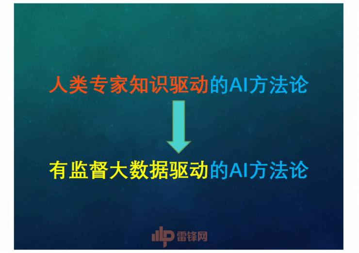 从方法论角度看:过去几十年流行的人类专家知识驱动的AI方法论被数据驱动的AI方法论全面取代。这里的数据主要指有监督的大数据。人类智能的产生是不是也完全基于有监督的大数据学习而来尚不得而知。从这个意义上讲,计算智能和人类智能之间的差异也不得而知。
