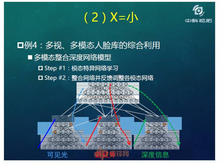 另外一个例子,手机上会有越来越多的摄像头,这些摄像头有可能是彩色的、也有可能是黑白的、还有可能是深度的,还有可能是近红外的。这些摄像头采集的数据,如何实现共用,这也是一个非常值得研究的话题。比如说在RGB-D数据集不足的情况下,如何基于大量的RGB数据来完成跨模态的融合,以实现更好的结果。
