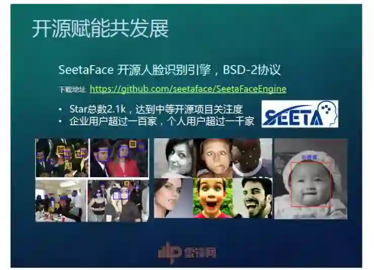 所谓的开源,是指我们可以给B端客户提供源码级的引擎技术。更进一步的是赋能,我们可以提供生成这些引擎的引擎技术。通俗地讲,我们不但卖鸡蛋,还卖下蛋的鸡,这是完全不同的合作模式。去年8月中科视拓开源了Seetaface人脸识别引擎,它虽然不是业界最好的人脸技术,但提供了一个优秀的基准,从而显著地提升了业界基准水平,也为一些公司提供了参照。有很多客户把Seetaface代码用到产品中,并进而与我们建立了更深度的合作。