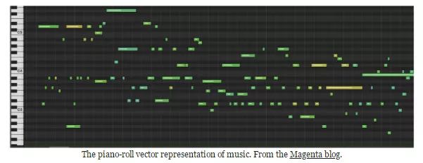 早期通过 Magenta 和其他音乐产生的作品可以产生单声道旋律,或者表达不同时间长度的单音,至少在一个维度上是可调的。这些模型与用于生成文本的语言模型相似:在文本生成中,模型产生代表单词的矢量,而在音乐 成中,模型产生相应的代表音符的矢量。