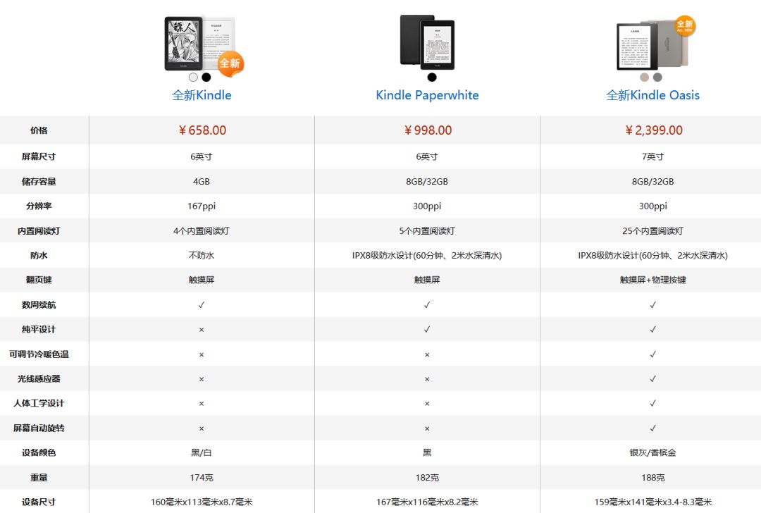 如今 Kindle 这一阅读工具已经深入人心,结合了网络环境,在牺牲一定阅读体验下(这一点因人而异)换来了便携。在 Kindle 这一设备本身的系列区分下,亚马逊更是拓宽了自身的产业链。