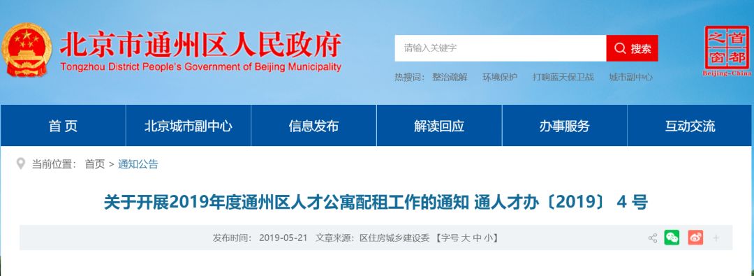 今天在通州区人民政府上面还真看到了人才公寓配租工作的通知。