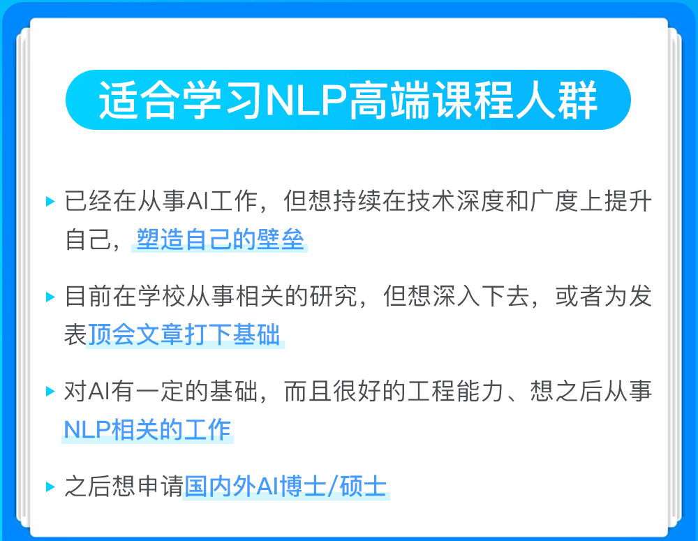 这次我们迎来了第八期NLP的招生,千万不要觉得这是一个对标其他线上课程的普通的训练营。由于内容的专业性以及深度,在过去吸引了大量的全球顶级名府的学员,