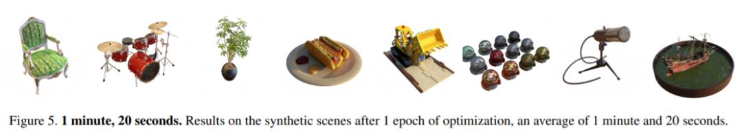 另外,新方法即使在优化的第一个 epoch 之后,也能获得高质量结果,用时不到 1.5 分钟,如图 5 所示。