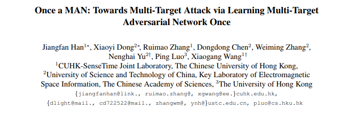2、Once a MAN: Towards Multi-Target Attack via Learning Multi-Target Adversarial Network Once