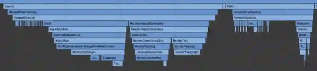 对于 Flutter 影响 Dart VM 垃圾回收策略机制的改进,现在有助于避免在应用启动序列中出现错误的垃圾回收 (GC) 周期。例如,在 Android 上渲染第一帧之前,Flutter 现在只通知 Dart VM "TRIM_LEVEL_RUNNING_CRITICAL" 及以上的内存压力。在本地测试中,此改进将低端设备上的第一帧时间减少了多达 300 毫秒。