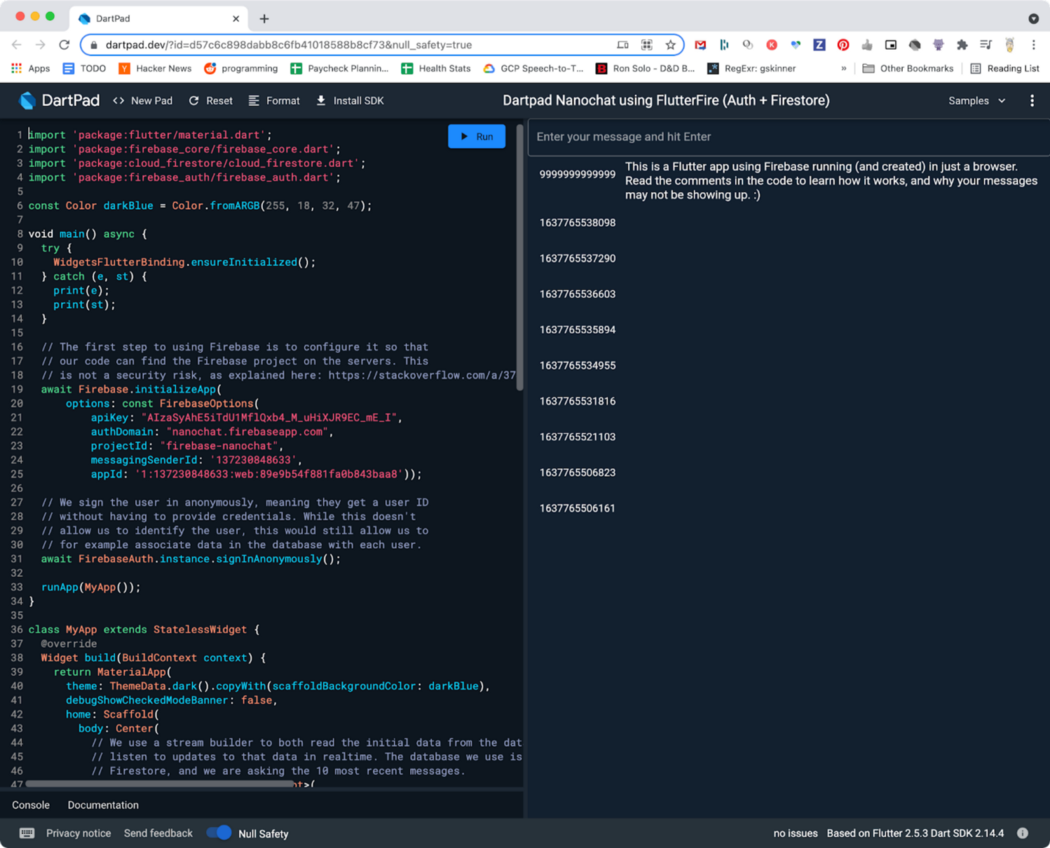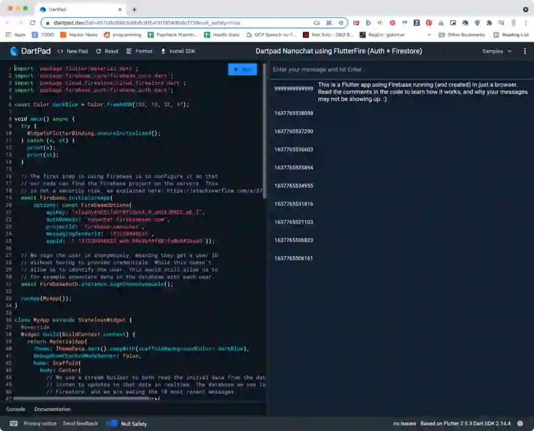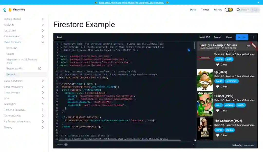 DartPad 的 FlutterFire 支持还包含在文档中直接嵌入 DartPad 实例的功能:
