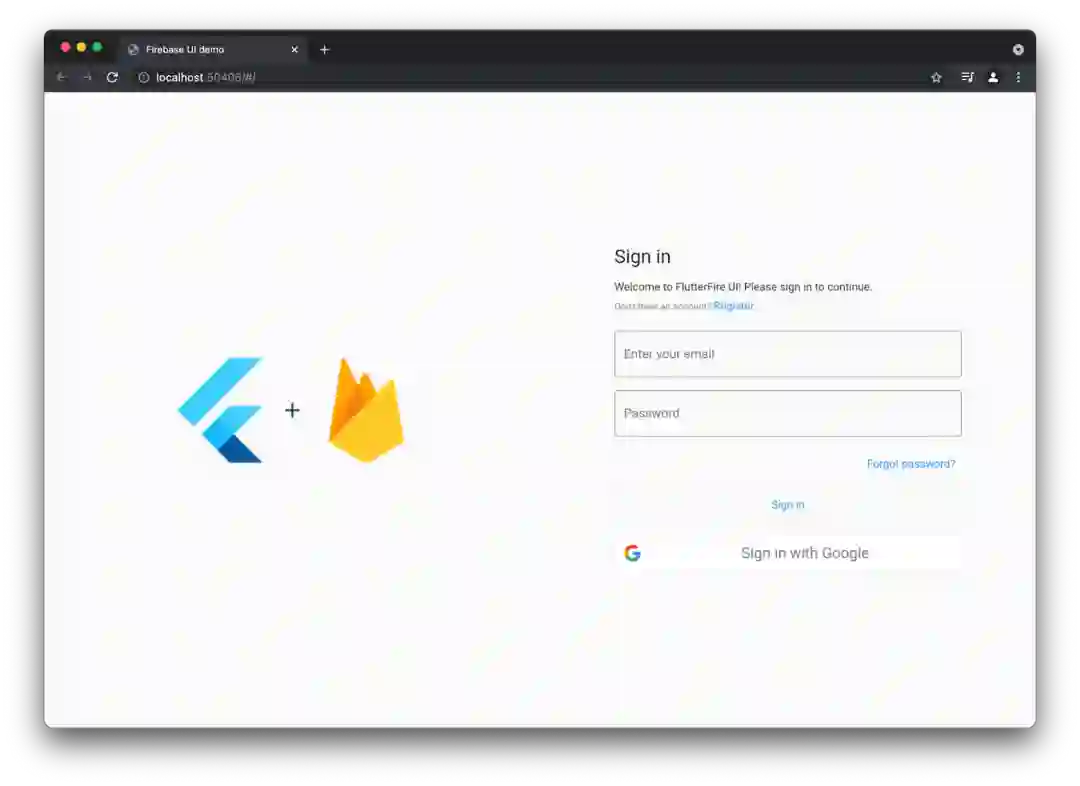 上面是移动版本的截图,但由于 flutterfire_ui 屏幕是响应式的,以下即为桌面设备上的界面: