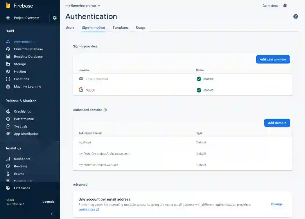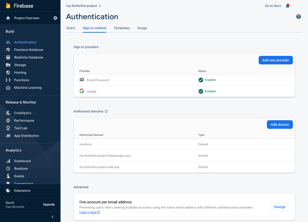 在这段代码中,我们初始化了 Firebase,由于用户尚未登录,因此显示登录屏幕。SigninScreen widget 配置了电子邮件登录和 Google 身份验证登录。我们还使用 firebase_auth package 监听用户的身份验证状态,一旦他们完成登录,我们就可以显示应用的其余部分。使用上面这段代码,您就可以为所有支持 Firebase 的平台 (Android、iOS、Web 和 macOS) 提供可用的登录流程。