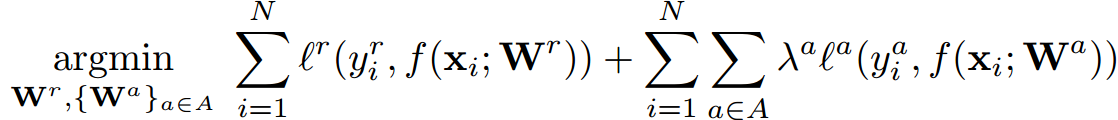 在传统 MLT 中,各任务重要程度是一致的,其目标方程如下: