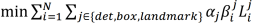 其中,第一项是平方和误差,表示人脸关键点损失函数,第二项是分类任务,采用的是交叉熵误差,第三项即正则项。