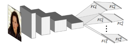 上图为 Vanilla CNN,针对 FC5 得到的特征进行 K 个类别聚类,将训练图像按照所分类别进行划分,用以训练所对应的 FC6K。测试时,图片首先经过 Vanilla CNN 提取特征,即 FC5 的输出。将 FC5 输出的特征与 K 个聚类中心进行比较,将 FC5 输出的特征划分至相应的类别中,然后选择与之相应的 FC6 进行连接,最终得到输出。