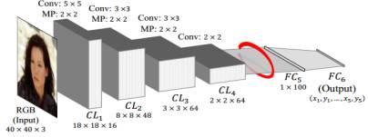 Level-3 与 Level-2 一样,由 10 个 CNN 构成,输入尺寸均为 15*15,每两个组成一对。Level-2 和 Level-3 是对 Level-1 得到的粗定位进行微调,得到精细的关键点定位。