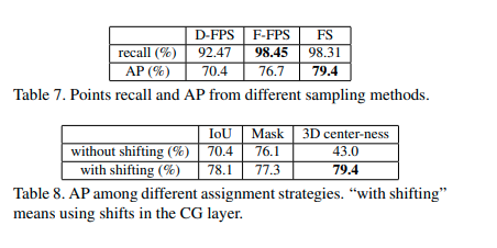 因此本文引入了 F-FPS,以达到保留更多前景点信息的目的,同时为了防止保留很多同一个目标的点导致精度下降,作者将 F-FPS 与 D-FPS 相结合,同时考虑欧式空间和特征空间的采样信息,通过 F-FPS 和 D-FPS 各选择一半的点的方法以保证分类的效果。