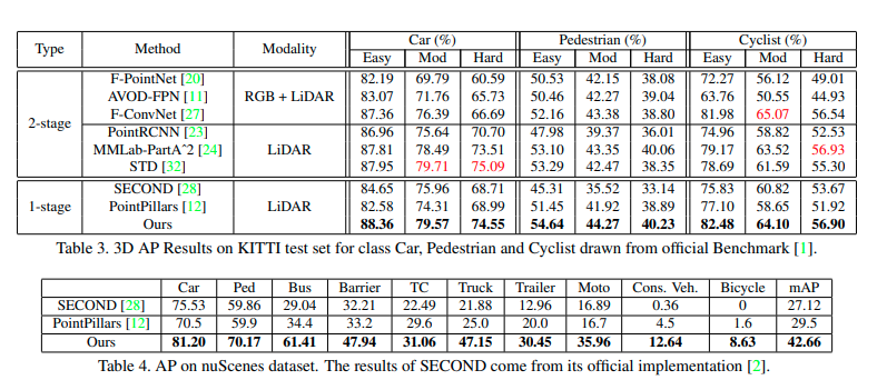 本文在 KITTI 和 nuScenes 两个数据及上进行了实验,实验结果表明本文提出的方法优于所有基于体素的单阶段方法,在更快的 inference 的基础上与两阶段基于点的方法也具有一定可比性。