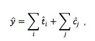 而在回归模型上,滴滴先后考虑过两种在业界比较流行的模型,Tree Based model 和 Factorization Machine。其中,树模型的最终输出是多棵树的集成结果,可以写成: