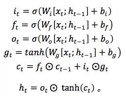 Recurrent model 的选择则比较丰富,不仅仅限于 RNN(包括变种 GRU、LSTM、SRU 等),还可以是一维卷积 CNN,或者是纯粹的 Attention model。以最流行的 LSTM 为例,它通过引入 additive memory 和 gate 来缓解简单 RNN 的梯度消失问题: