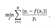 考虑到用户对误差的敏感程度更多的和相对值有关,滴滴将 MAPE(mean absolute percentage error)选择为目标函数,对应于 MAPE 的优化问题为: