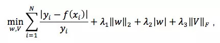 其中 d 是特征维度,通常在千万级别甚至更高。而参数向量的维度 m 相对很小,通常在几十的量级便能达到较好的预测精度。FM 同样可以对 ETA 进行回归建模,加上一些正则项,就得到了优化目标