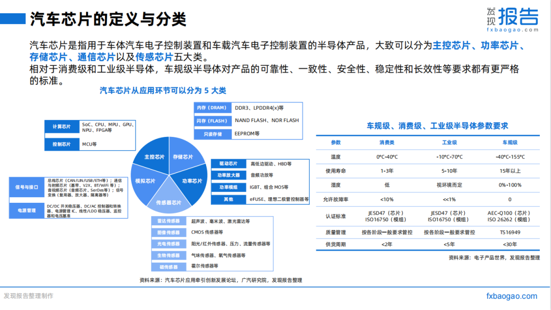智能化方面,当前汽车智能化处于0-1阶段,自动驾驶、智能座舱等对汽车感知器件、运算能力、数据量需求日益提升,汽车控制芯片、存储芯片、模拟芯片、传感器成长空间广阔。